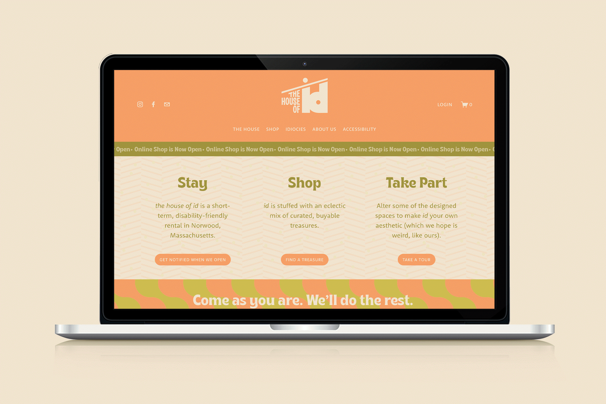 Dara & Paige needed a logo, brand and website for their new short-term, disability-friendly rental, which also doubles as an online and guest shop filled with vintage treasures. We designed a logo, brand and various print and web collateral reflective of their retro-modern aesthetic, along with a website that featured the house and online shop.